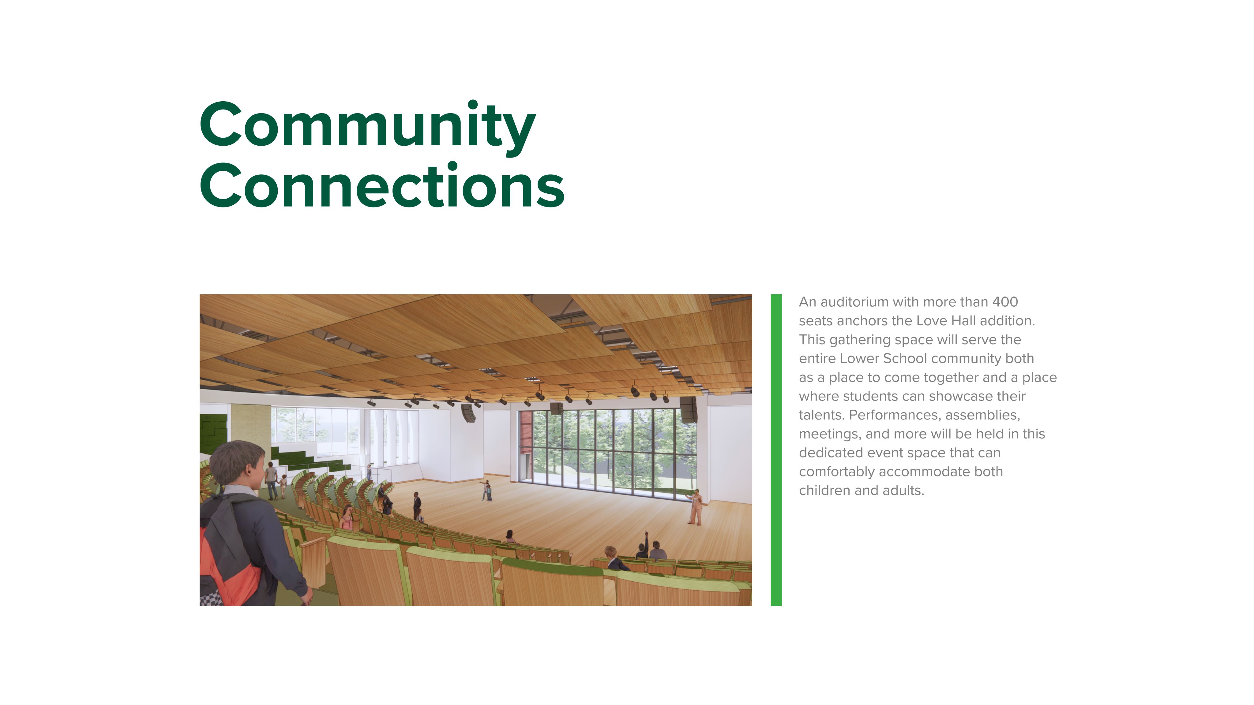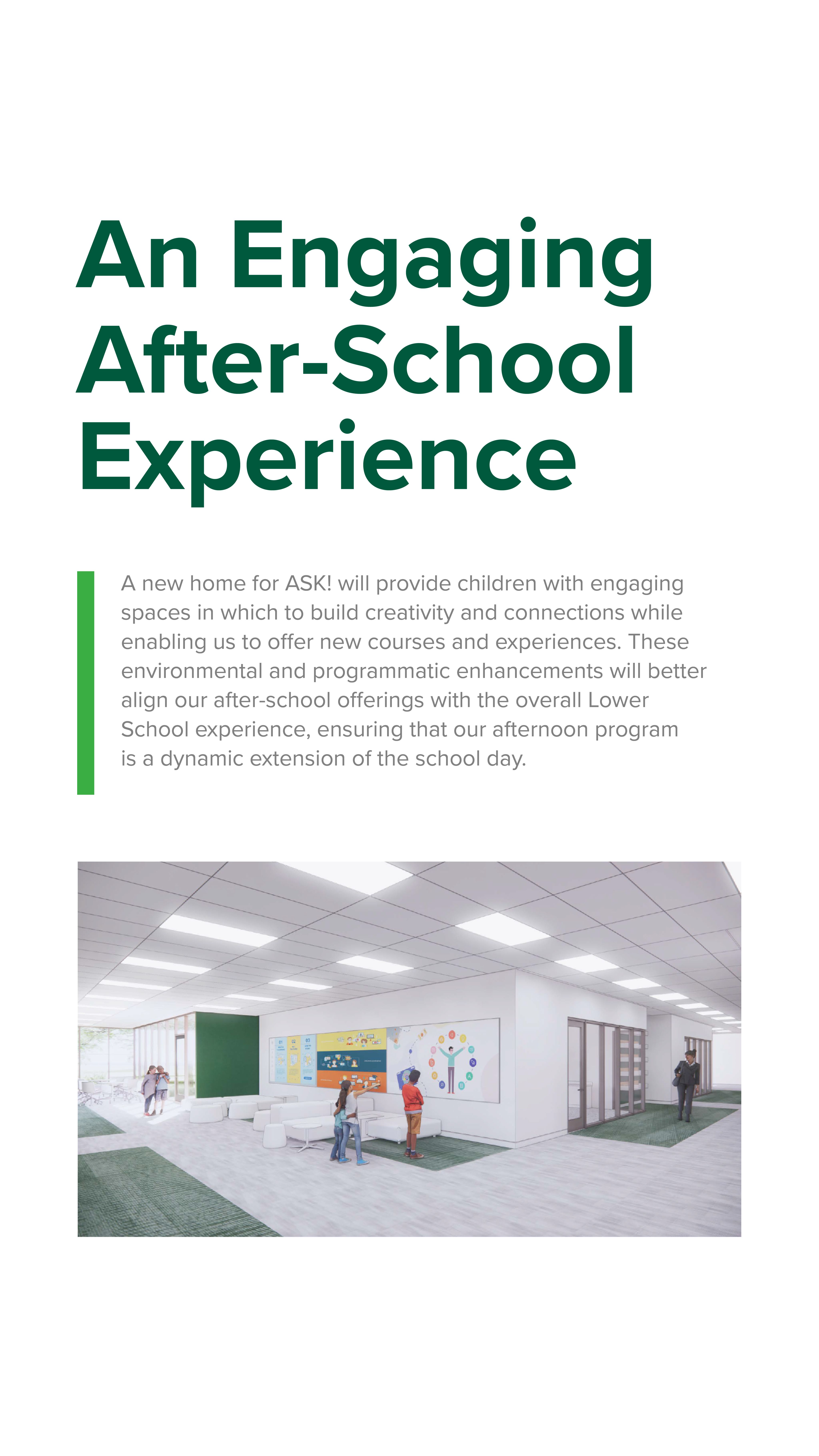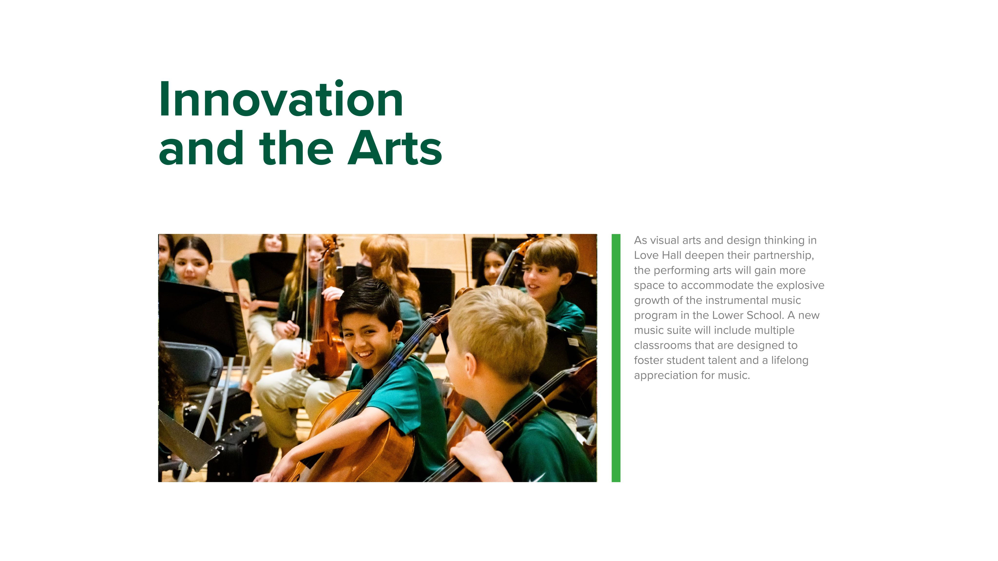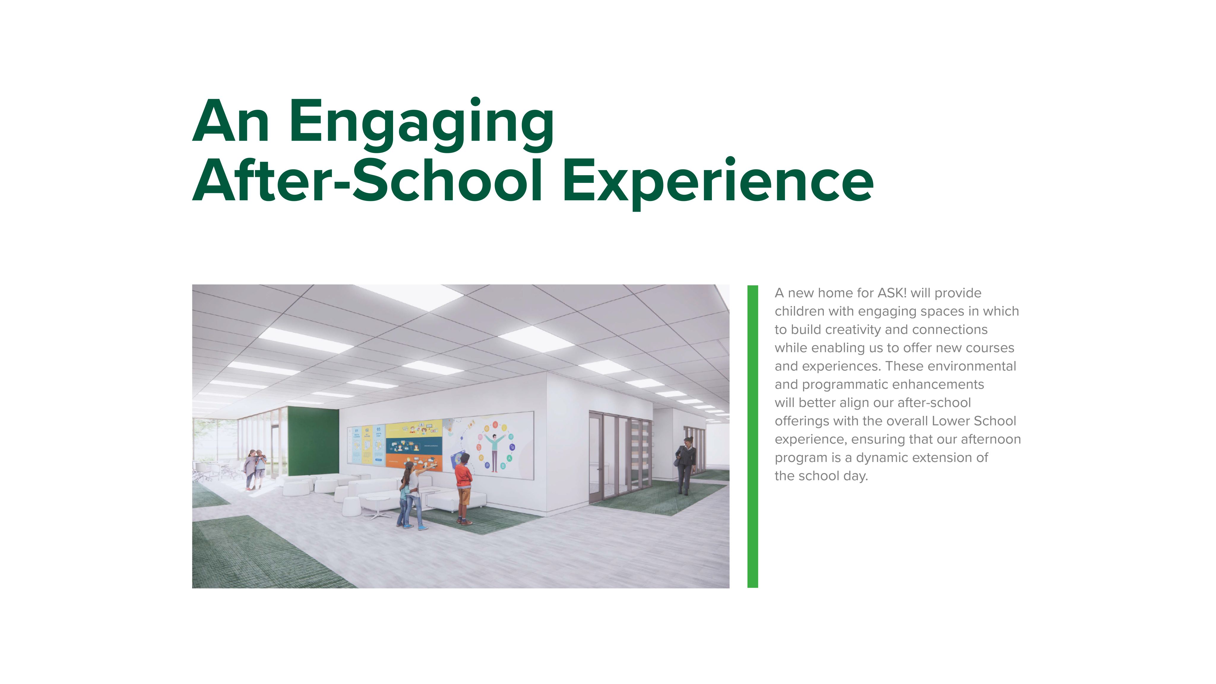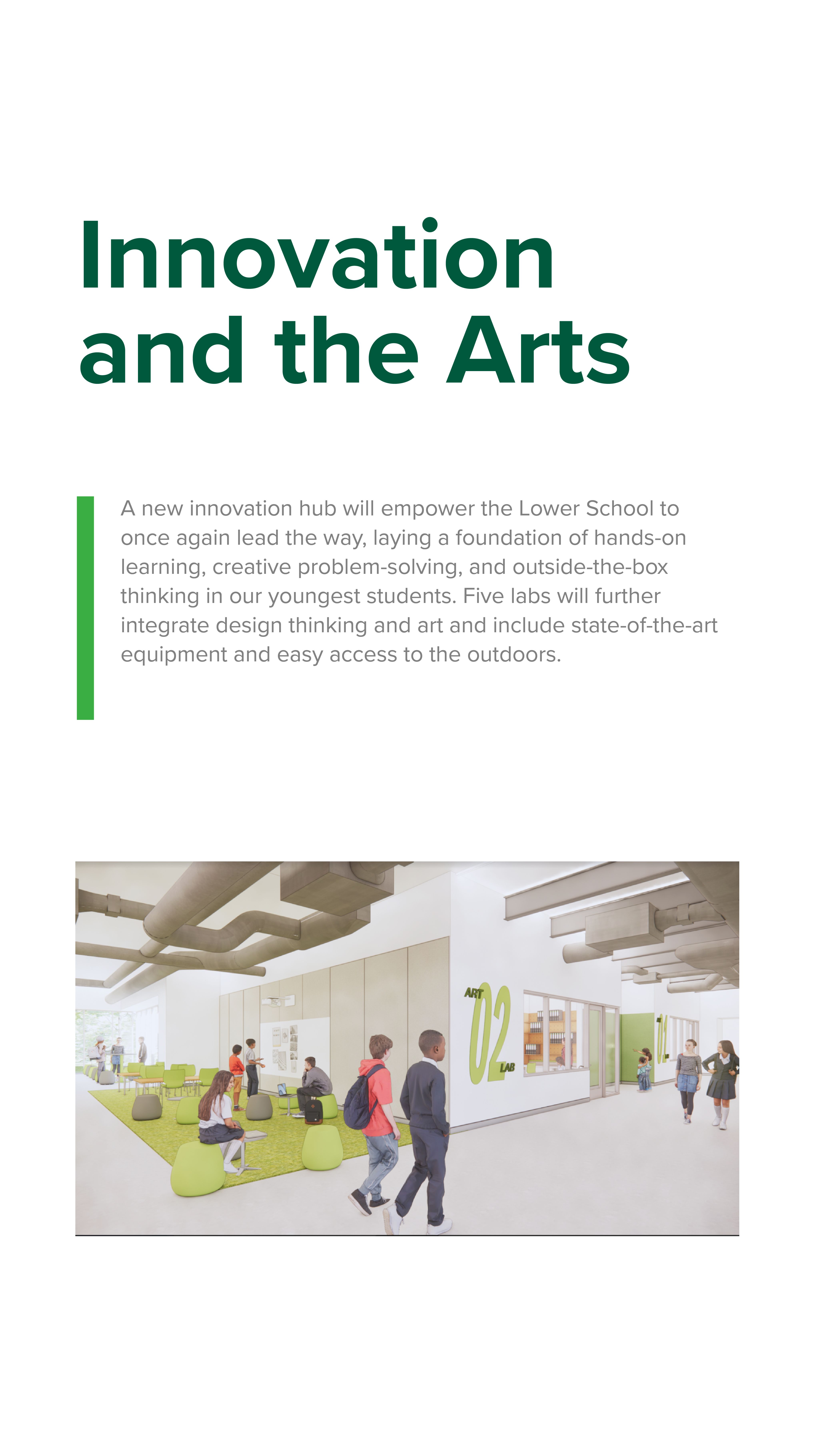- Creating dedicated activity and performance spaces to best serve the Lower School's dynamic program offerings