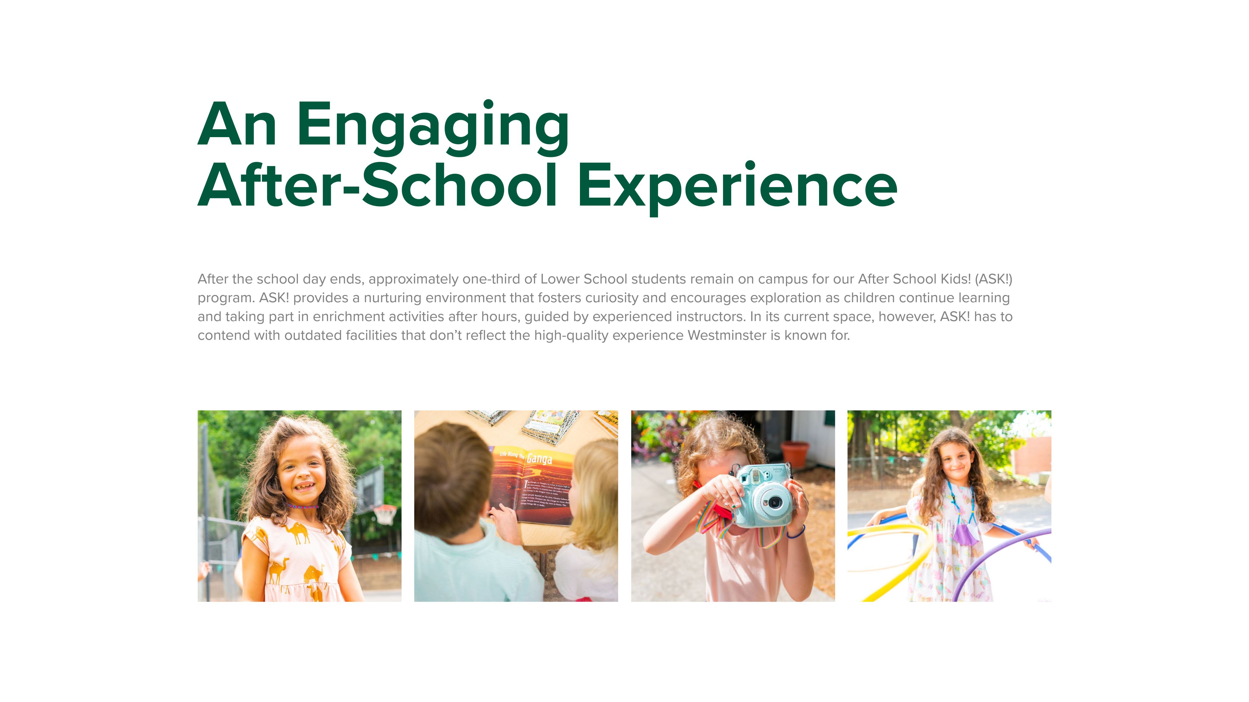 - Creating an adequate space for the ASK! (After School Kids!) program