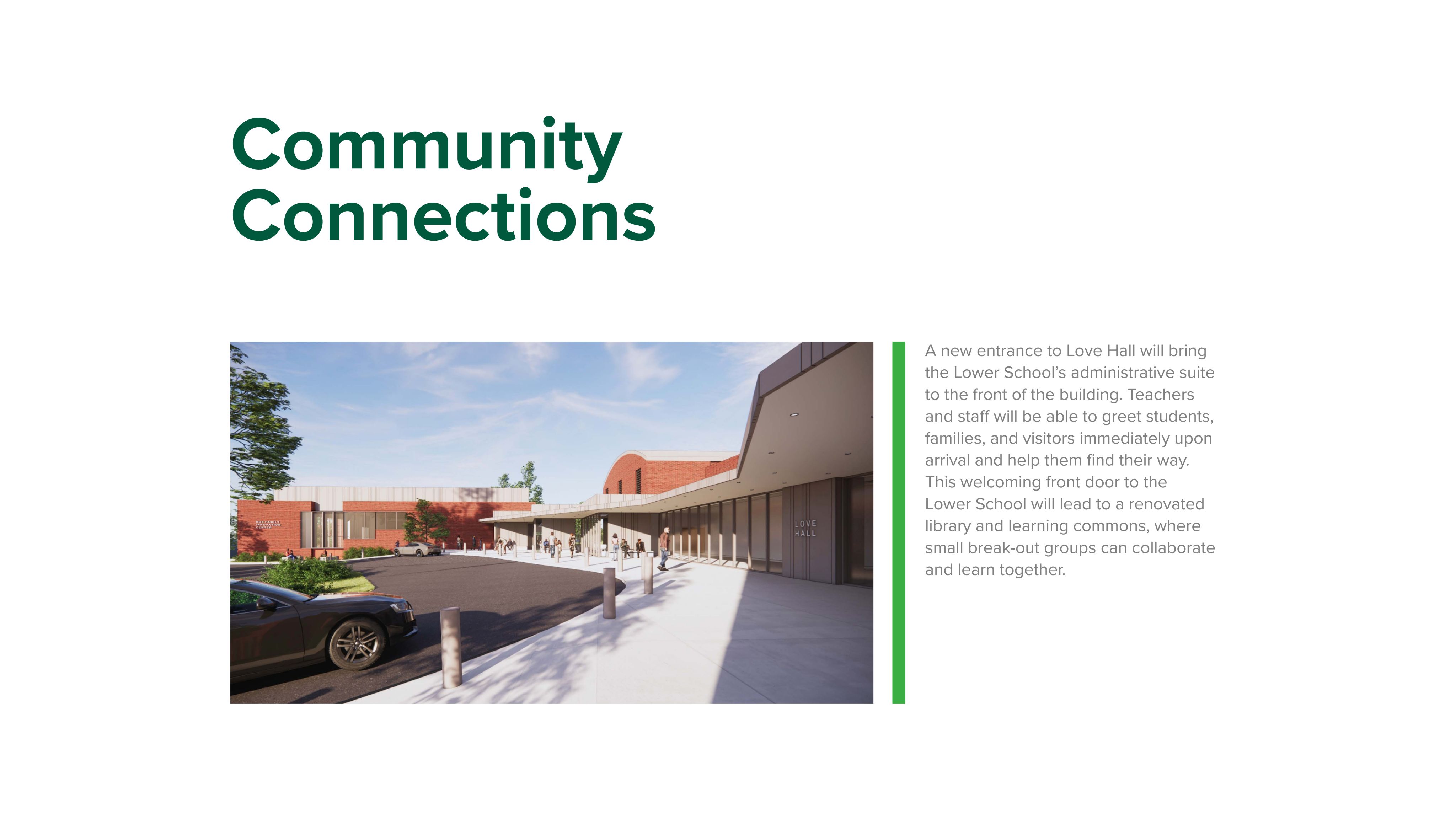 The Love Hall renovation and expansion will address the Lower School’s most immediate needs and support the School’s unique programs and experiences through: