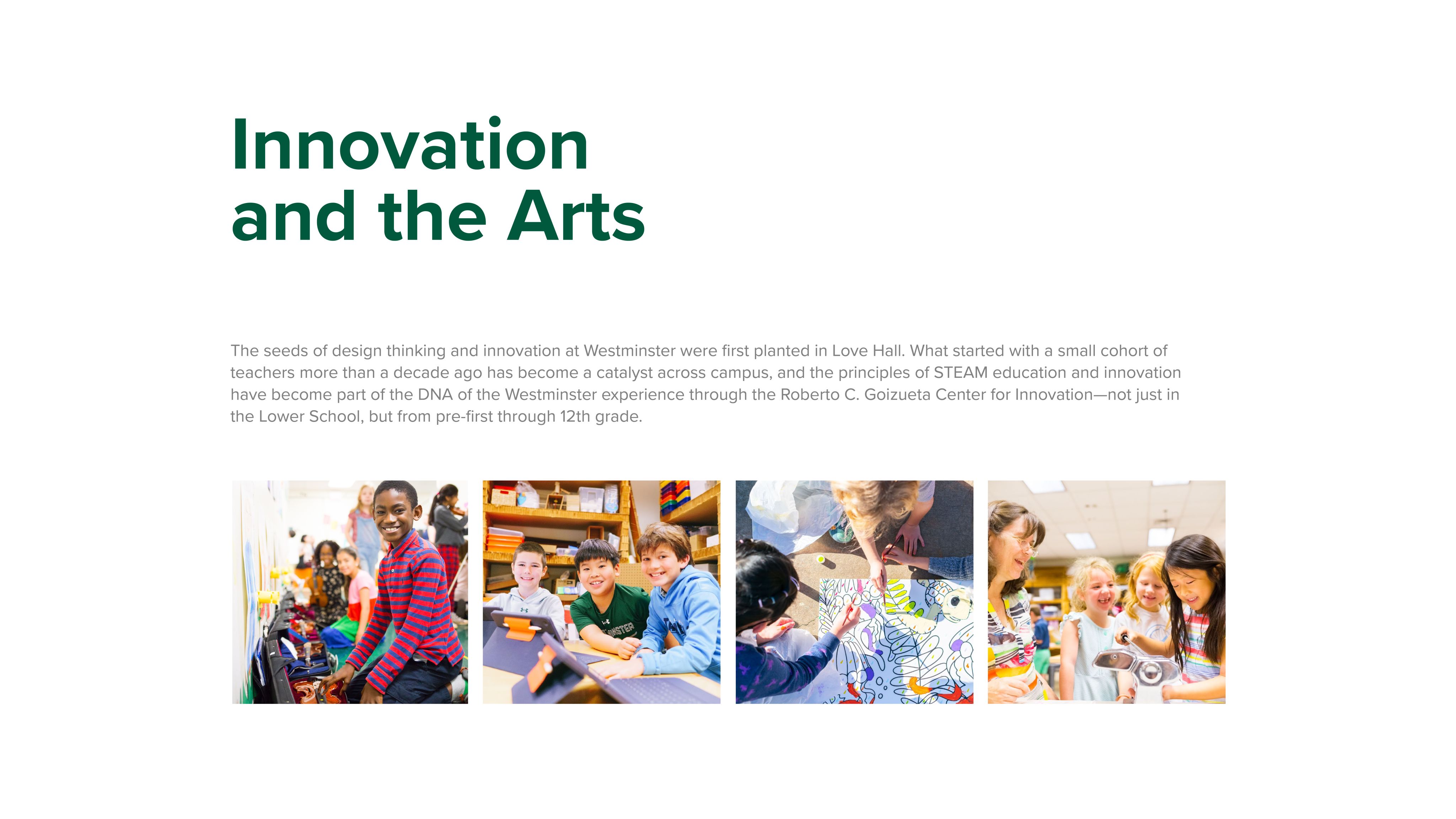 When the Board of Trustees Campus Planning Committee first began their work identifying the greatest needs across Westminster’s 180-acre campus almost a decade ago, The Gay and Erskine Love Hall at The Irene and George Woodruff Elementary School was a clear priority. As the home of our youngest Wildcats, Love Hall is a place filled with joy and wonder where Lower School faculty provide an innovative and engaging experience each and every day. The new and renovated spaces planned within the Love Hall campus will address immediate curricular needs related to innovation, art, and music; community space that will allow the entire Love Hall community to gather together; and a new home for our burgeoning ASK! program.